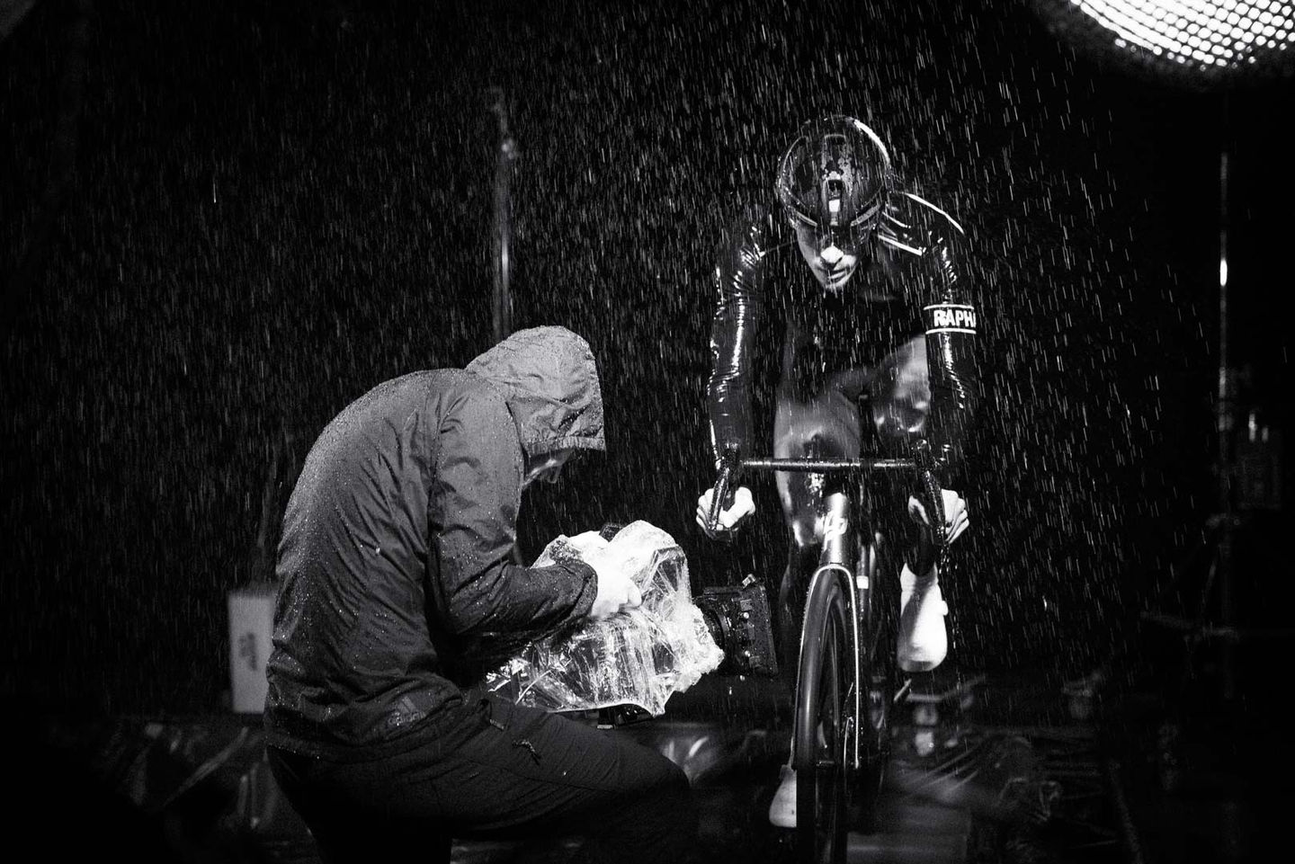 We imagined a video in an immersive studio environment. The first part showcases the Blackbird Race racing tire, which materializes with a play of shadows and backlighting, interspersed with sequences of the rider in frenetic succession. A drop of water breaks the frenetic rhythm and we move on to the second part: the rain intensifies and interacts with the All Seasons tire, illustrating its resistance and grip in extreme conditions.